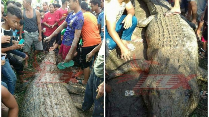 SURYAMALANG.com - Seekor buaya sepanjang 5 meter ditangkap dan dibunuh oleh SWAT di Sarawak, Malaysia.