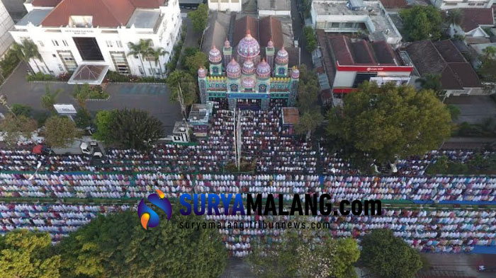 Sebanyak 25.000 jamaah yang hadir dari dalam dan luarkota Malang berbondong-bondong datang untuk melaksanakan salat ied di halaman kantor PT ACA, Jumat (15/6/2018).