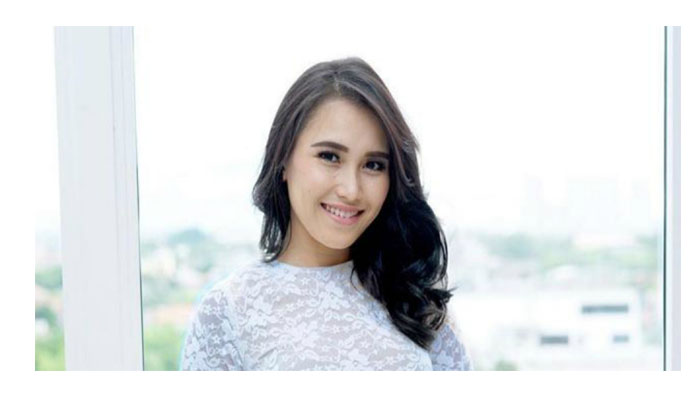 Perempuan itu terlihat tersenyum ke arah kamera.