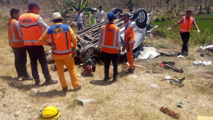 Avanza dari Surabaya Terjungkal di Jalan Tol Caruban, 2 Orang Tewas