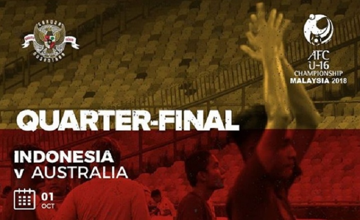 Timnas Indonesia U16 akan menghadapi Timnas Australia U16 pada perempat final Piala Asia U-16 2018 di Stadion Nasional Bukit Jalil, Kuala Lumpur, Malaysia, Senin (1/10/2018).