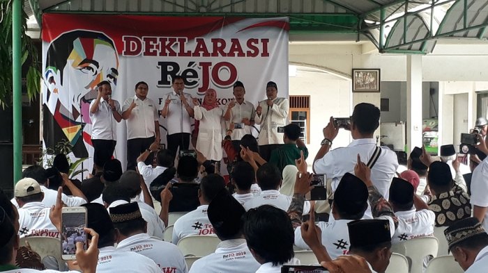 SURYAMALANG.COM, GRESIK - Relawan Jokowi (Rejo) Capres dan Cawapres, Joko Widodo dan KH Ma'ruf Amin Kabupaten Gresik menggelar deklarasi di rumah mantan KH Robacah Masum mantan Bupati Gresik, Jl Kalimantan, Desa Yosowilangun Kecamatan Manyar.