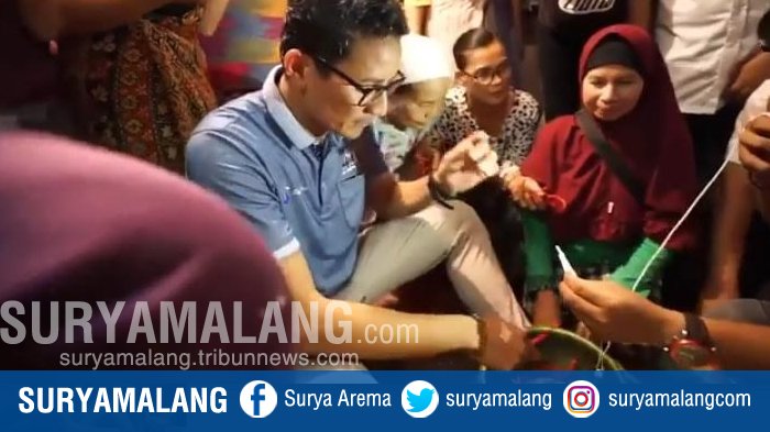 SURYAMALANG.COM, SURABAYA - Calon Wakil Presiden nomor urut 02, Sandiaga Uno menyempatkan berkunjung ke tiga pasar di dalam rangkaian Napak Tilas Resolusi Jihad dalam rangka perayaan Hari Santri, Senin (22/10/2018). Di antaranya dengan berkunjung ke Pasar Mojoagung (Jombang), Pasar Brangkal (Mojokerto), hingga Pasar Krian (Sidoarjo).