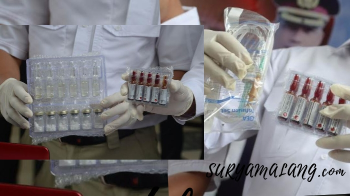 Tak hanya menyita beragam produk oplosan, polisi juga menyita beberapa peralatan praktik, termasuk alat infus.