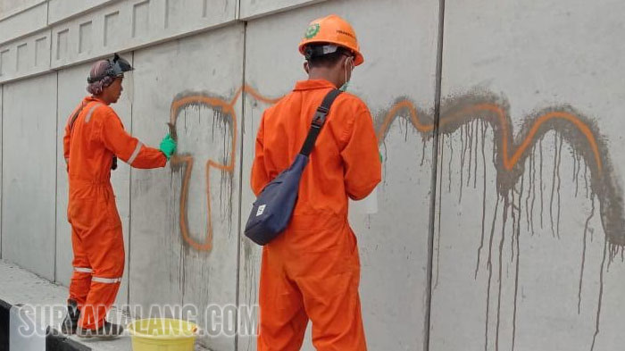 Coretan di Underpass Karanglo Malang Mulai Dibersihkan tapi Tidak Bisa Langsung Hilang