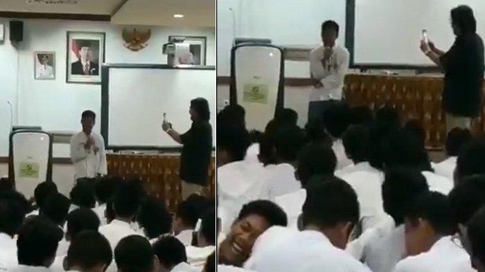 Dari video yang beredar, tampak satu kelas menjadi heboh ketika pelajar SMA tersebut baru mengucapkan salam.