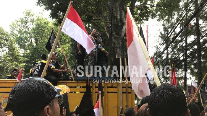 SURYAMALANG.COM, KLOJEN – Warga yang bergabung dalam Gerakan Masyarakat Bawah Indonesia (GMBI) Malang Raya demonstrasi menuntut pembangunan rest area di Jalan Lintas Selatan (JLS).