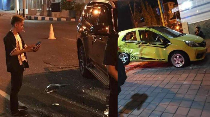 Mobil Mitsubishi Pajero Sport nopol AG 1033 PK yang ditumpangi Cak Percil tabrakan dengan mobil Honda Brio nopol AG 1345 BV.