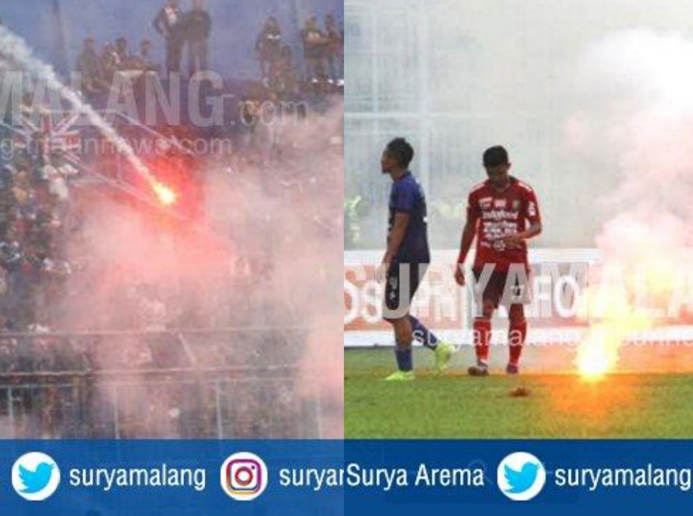 SURYAMALANG.COM - Pertandingan Arema FC vs Bali United yang berlangsung Senin 16 Desember 2019 kemaren diwarnai aksi pelemparan Flare.