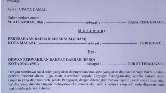 Dua korban krisis air bersih di Kota Malang menggugat perdata PDAM Kota Malang dan DPRD Kota Malang.