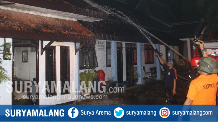 Saat dicek, terlihat api di salah satu ruangan kantor Dinkes Kota Blitar.