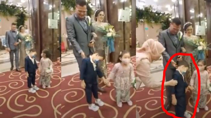 Video lucu bocah cilik tidur sambil berdiri saat jadi pengiring pengantin, reaksinya bikin gemas saat dibangunkan