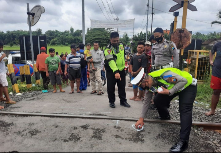 Saat korban melintasi perlintasan kereta tanpa palang pintu itu, tiba-tiba KA Jenggala mlaju dari arah barat.