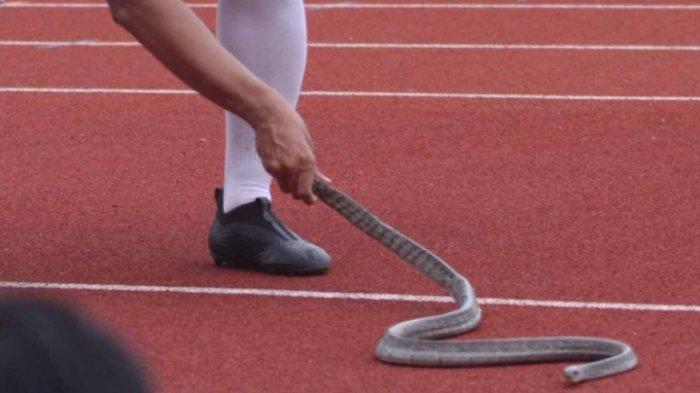 Pemain mengetahui ular tersebut saat menyebrangi lintasan atletik sintetis.