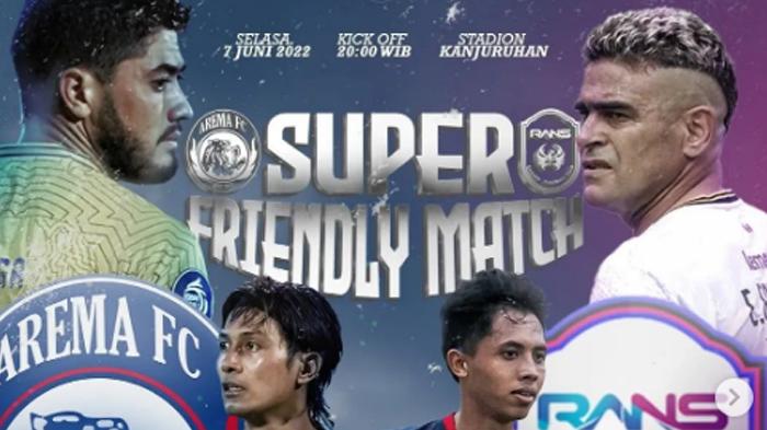 Arema FC akan menjamu RANS Nusantara FC dalam laga uji coba di Stadion Kanjuruhan, Kabupaten Malang, Selasa (7/6/2022).