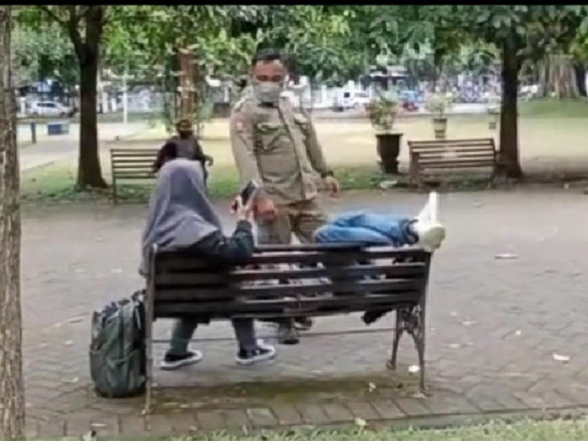 Asyik bermesraan di bangku Alun-Alun Merdeka, pasangan kekasih diciduk petugas Satuan Polisi Pamong Praja (Satpol PP) Kota Malang.