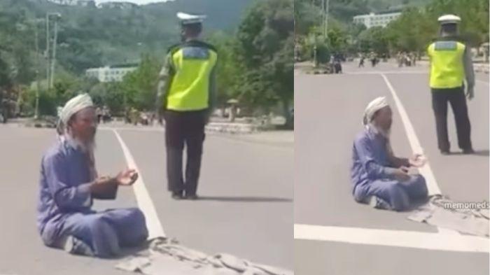 Tingkah viral pria bersorban ditilang malah duduk di jalan doakan polisi kena azab, gak ada SIM dan helm.