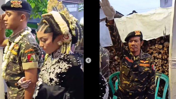 Viral di media sosial anggota Banser nikah pakai upacara pedang pora bak prajurit TNI menjadi sorotan.