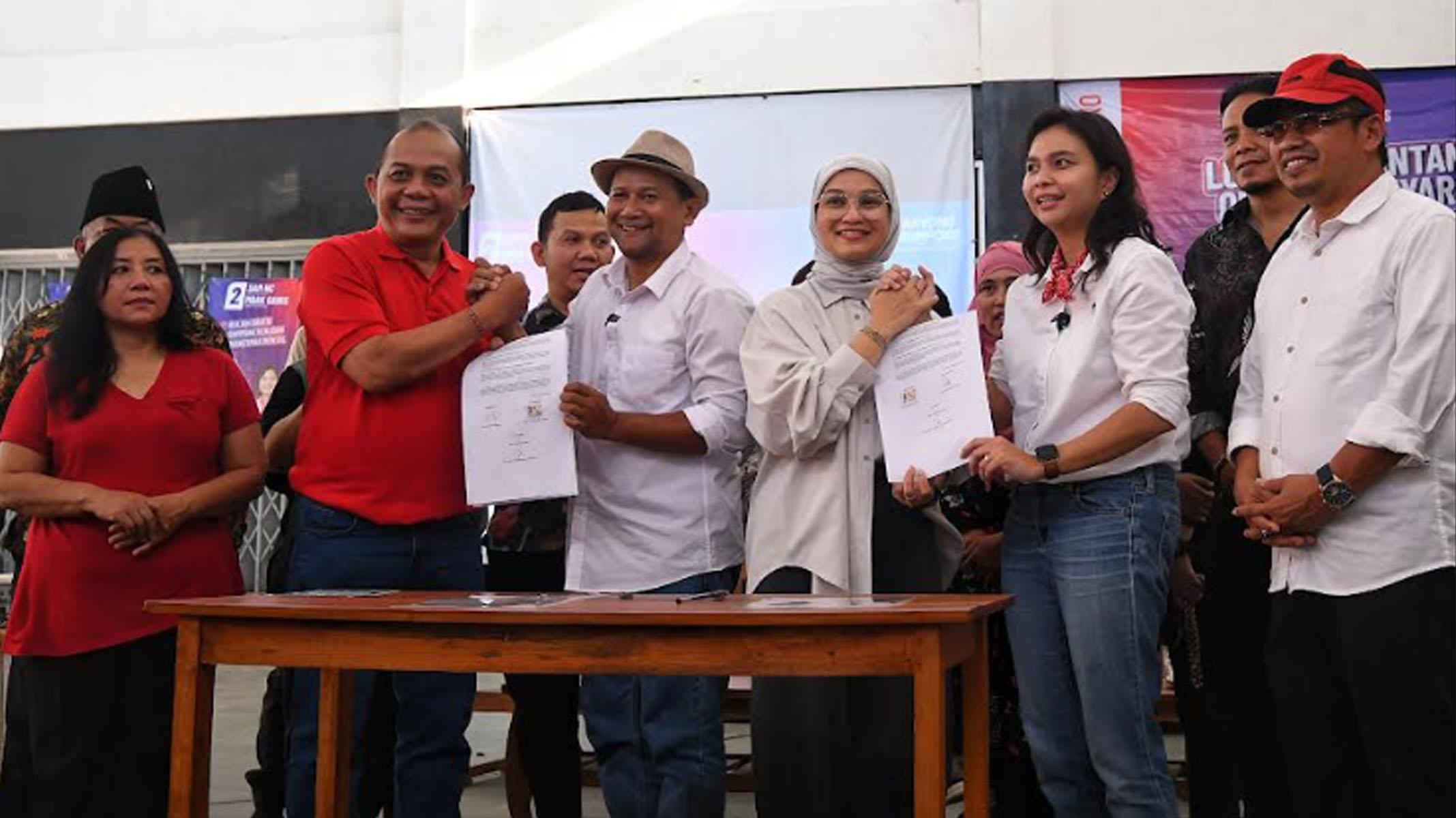 "Sebagai bukti kami saat ini melakukan tanda tangan pakta integritas dan berkomitmen atas program kerja kami. Kami akan pertanggung jawabkan apa yang perbuat dan disaksikan partai pengusung," terang pria dengan ciri khas bertopi itu.