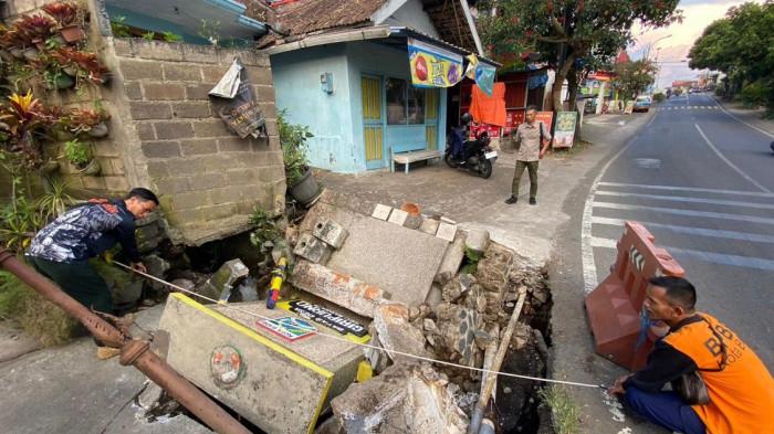 “Akibatnya plengsengan teknis pada saluran air mengalami kerusakan karena tergerus arus, sehingga tanah di sekitarnya ikut ambles,” jelasnya.