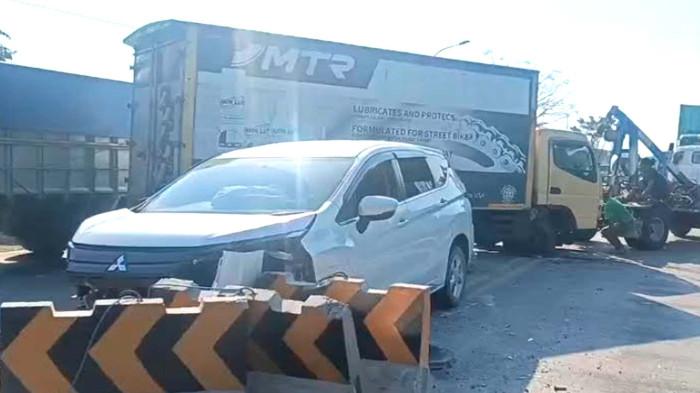Kecelakaan Mitsubishi Expander Vs Truk Box di Jalan Raya Duduksampeyan Gresik, Tabrak Barrier Beton