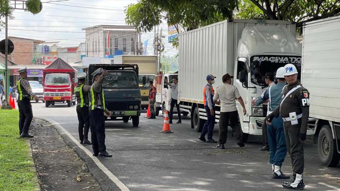 Berlangsung selama satu jam mulai pukul 09.30 WIB hingga 10.30 WIB, petugas menghentikan dan memeriksa kelengkapan serta kelaikan mobil angkutan barang mulai pikap hingga truk termasuk angkot.