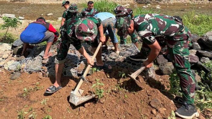 Kamis (16/10/2025) program (TMMD) ke-126 Kodim 0818/Malang-Batu mulai dilakukan pengerjaan bronjong tebing sungai Lebakharjo.