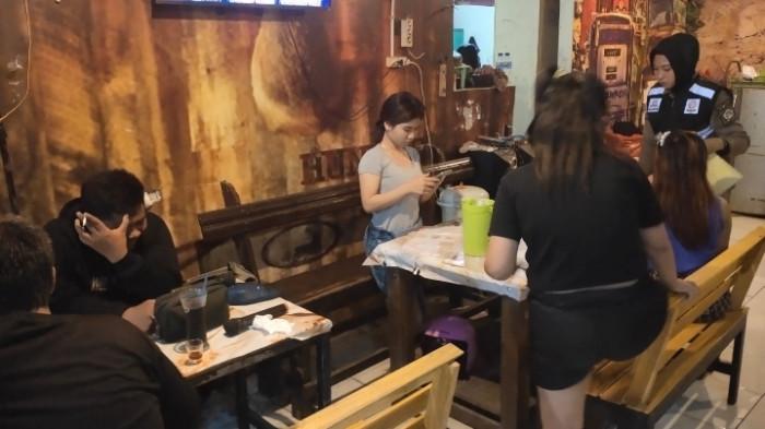 Kafe di Jalan Tambang, Kabupaten Gresik dirazia Satpol PP. Hasilnya, puluhan botol minuman keras (Miras) disita.