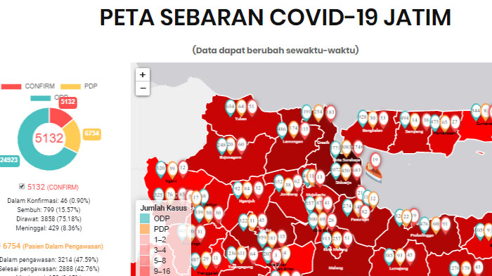 update virus corona di Malang Raya dan Jatim hari ini hingga pukul 13.00 WIB total ada 137 orang dengan 47 sembuh