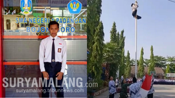 Beredar video viral yang menampilkan seorang siswa memanjat tiang bendera saat peringatan Hari Guru Nasional di Bojonegoro