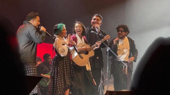 Lima musisi kenamaan Indonesia, Dere, Idgitaf, Kunto Aji, Sal Priadi, dan Tulus menghibur penonton Tur SAMA SAMA yang berulang tahun.