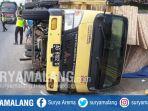 Akibat Sopir Mengantuk, Truk Muat Bahan Baku Cat Terguling di Jalan Raya Duduksampeyan Gresik