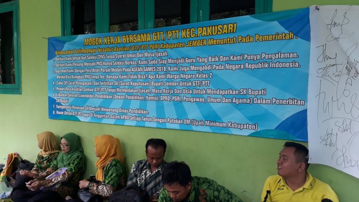 Mereka yang tergabung dalam Asosiasi GTT/PTT Kabupaten Jember menyuarakan delapan tuntutan, salah satunya tes tanpa batasan usia